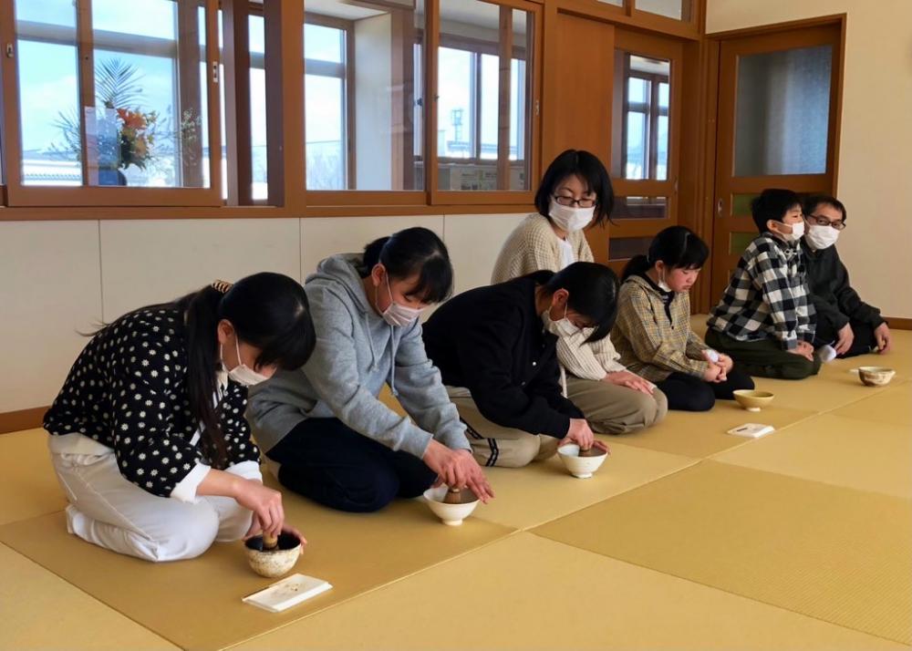 砺波南部小学校6年太田、松本、柴田 茶道をまなぼうに参加して、お茶をたてたりしたことがなかったのでいい経験になりました。お茶は少し苦かったけど、自分でたてたお...